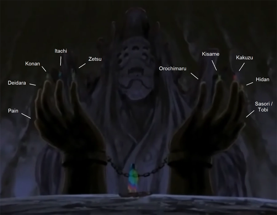 Sie fängt die einzelnen Jinchuuriki oder Bijuu und extrahiert ihre Kraft mit Hilfe des Fuuinjutsu: Genryuu Kyuufuujin-Jutsu. Da Bijuu und Jinchuuriki eine Symbiose bilden, sterben die Jinchuuriki durch den Verlust ihres Bijuu; die Bijuu jedoch nicht.