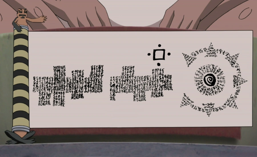 Gerotora und Oogamasennin diskutieren darüber, ob Gerotora die Anweisung Jiraiyas befolgen soll, Naruto die Schlüsselschriftrolle zu geben. Oogamasennin befiehlt Fukasaku, Naruto zu rufen. Er sagt Naruto seine Zukunft voraus. Er prophezeit, dass Naruto auf einen Oktopus trifft und gegen einen Shinobi mit mächtigen Augen kämpfen wird. Daraufhin befiehlt er Gerotora, Naruto den Schlüssel zum Siegel des Kyuubi zu zeigen. Am Myoubokuzan solle Naruto nun das Siegel lösen. Doch Gerotora unterbricht Fukasaku und erklärt ihm das Chakra des Kyuubi: