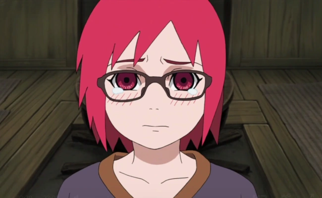 Nach dem Krieg ließ sie sich in einem von Orochimarus Verstecken nieder und half Sakura Haruno bei der Entbindung von Sarada. Sie behielt die Nabelschnur als Andenken und befindet sich zu dem Zeitpunkt, als Sarada durch Suigetsus Hilfe über sie erfährt, in einem anderen Versteck. Das erste Mal fiel Karin Sarada auf, als sie auf einem Foto direkt neben ihrem Vater stand. Nach einem Gen-Test, wegen dem Sarada fälschlicherweise glaubte, Karin sei ihre leibliche Mutter, staucht Karin Suigetsu zusammen und will, dass er sich bei dem Mädchen für die Verwirrung entschuldigt.