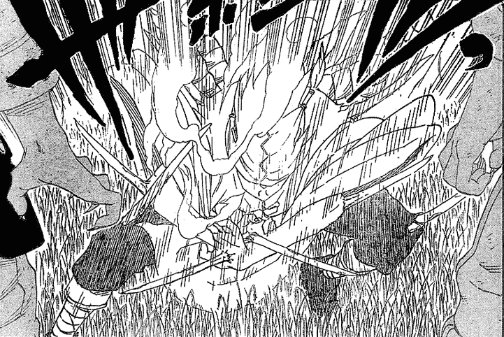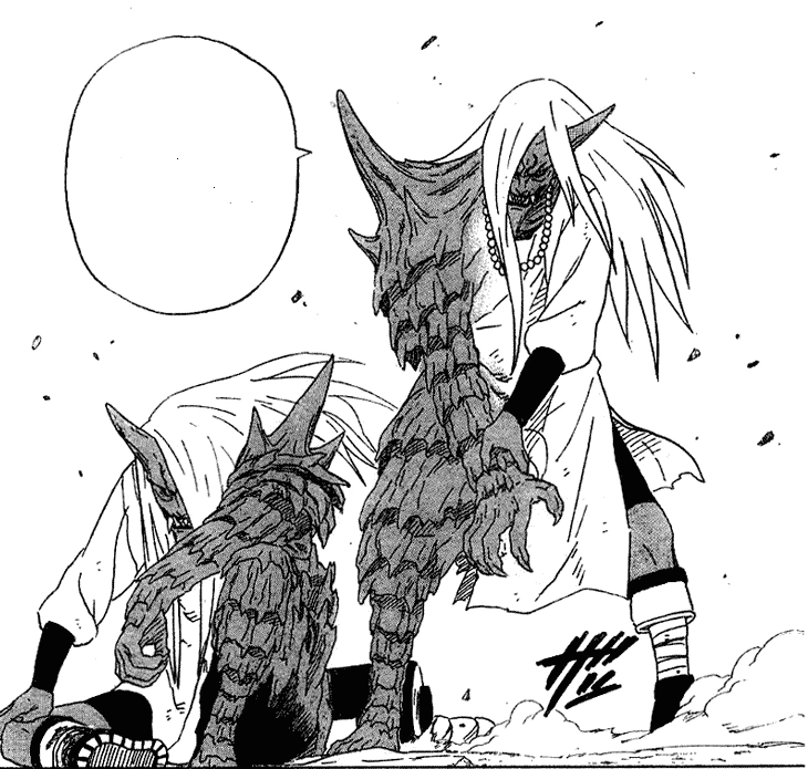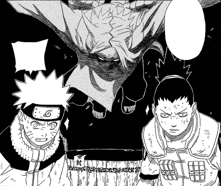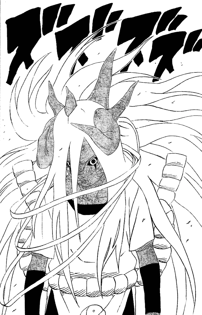 Kimimaro antwortet Naruto, dass Orochimaru Sasukes Körper übernehmen will. Naruto, der nun zornerfüllt ist, verwendet das Chakra des Kyuubi, um Kimimaro mit hunderten Schattendoppelgängern zu umzingeln.