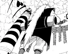 Jiraiya zieht sich vorerst zurück, da er weiß, dass er drei Rin'negan Anwender mit verbundenen Sehvermögen nicht besiegen kann. Des weiteren können die Pains auf Jiraiyas körperliche Angriffe reagieren, da Pain, Jiraiyas ehemaliger Schüler, seine Fähigkeiten kennt. Da Fukasaku und Shima Jiraiya helfen wollen, tun sie das, was er nicht kann: ein auf Gesang basierendes Genjutsu. Während sie den Angriff vorbereiten, werden sie von Pain lokalisiert. Um sich Zeit zu verschaffen, trennt er die drei Pains, um endlich im Einzelkampf kämpfen zu können.