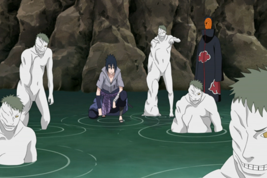 Derweil hat der schwarze Zetsu den Kampf Kisame vs Killer B aufgezeichnet und der weiße Zetsu löst sein Nari Kawari no Jutsu auf, mit dem er einen perfekten Doppelgänger Kisame Hoshigakis im Kampf abgegeben hatte. Diese Art von Zetsus Doppelgängern sind nicht einmal am Chakra zu unterscheiden.