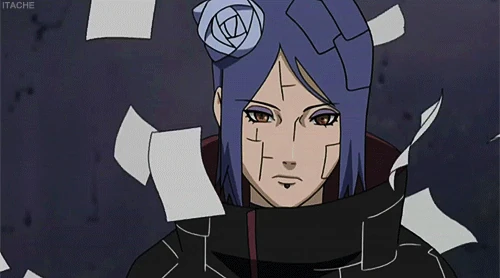 <p>Konan es una ex-criminal Rango-S, ex-miembra de Akatsuki y la difunta líder de Amagukere, se caracteriza por basar su estilo de pelea en el Origami.