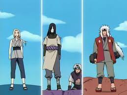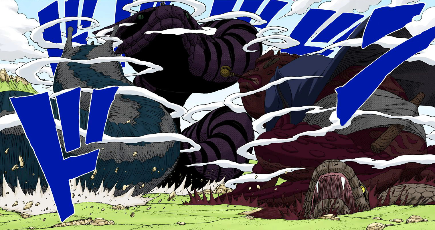 Con la intención de eliminar a sus ex compañeros de equipo, Orochimaru invoca a Manda mientras Tsunade y Jiraiya invocan a Katsuyu y Gamabunta respectivamente. Katsuyu y Gamabunta al ser más tienen ventaja