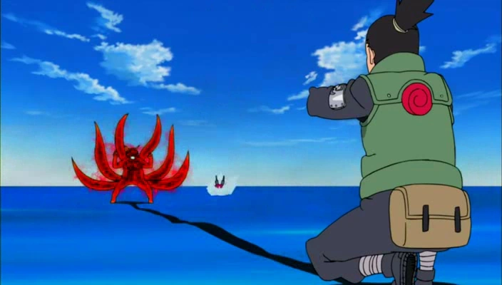Al llegar en apoyo de la Primera División, Shikamaru y Chōji Akimichi acompañados de una porción considerable de su propia unidad, combinan sus esfuerzos en el compromiso con los refuerzos de las divisiones Segunda y Quinta. Al recibir más instrucciones de su padre, Shikamaru coordina una formación que involucra a Chōji e Ino Yamanaka, con el fin de combatir a un Kinkaku en su forma de Seis Colas. Shikamaru y Chōji logran una distracción momentánea para obligar a Kinkaku bajar la guardia y ser manipulado con éxito por Ino, Kinkaku siendo controlado pronuncia la respuesta al llamado de Darui, dando como resultado su captura en el Kohaku no Jōhei.[7] La División restante retrocede lentamente en forma V para que así el enemigo los siga y ya que son tan pocos enemigos cuando llegue refuerzo de las demás divisiones que están en la costa acabarlos de un solo golpe