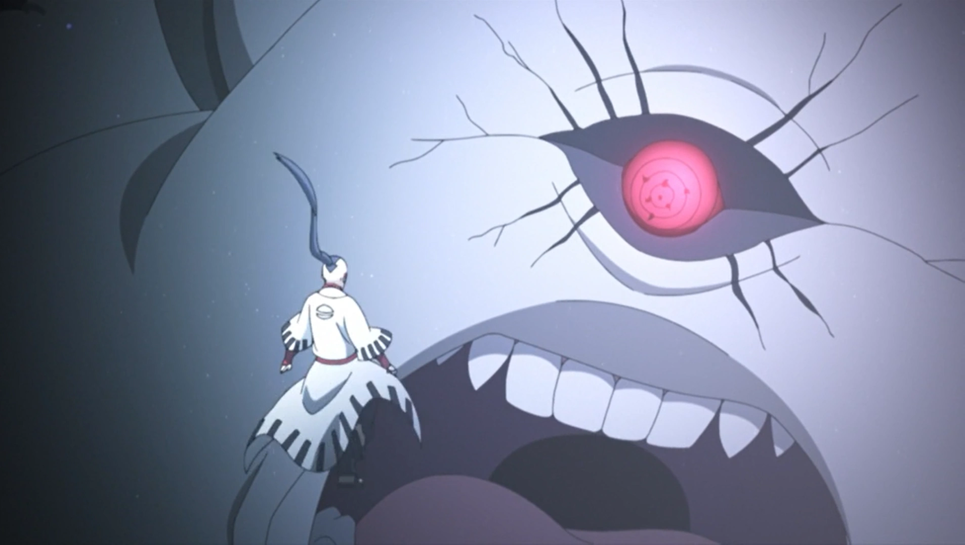 Mientras Sasuke Uchiha investigaba la misteriosa dimensión, se encontró con el Diez Colas. Momentos después, Isshiki arribó a la dimensión y procedió a flotar sobre la criatura. La bestia intentó devorarlo, pero se encontró fuera de su alcance. Isshiki comentó que era demasiado pronto debido a que primero tenía que completar la vasija, antes de proceder a absorber más chakra del Diez Colas, mediante su Karma, adquiriendo un cuerno que se asemejaba a su forma original.[5]