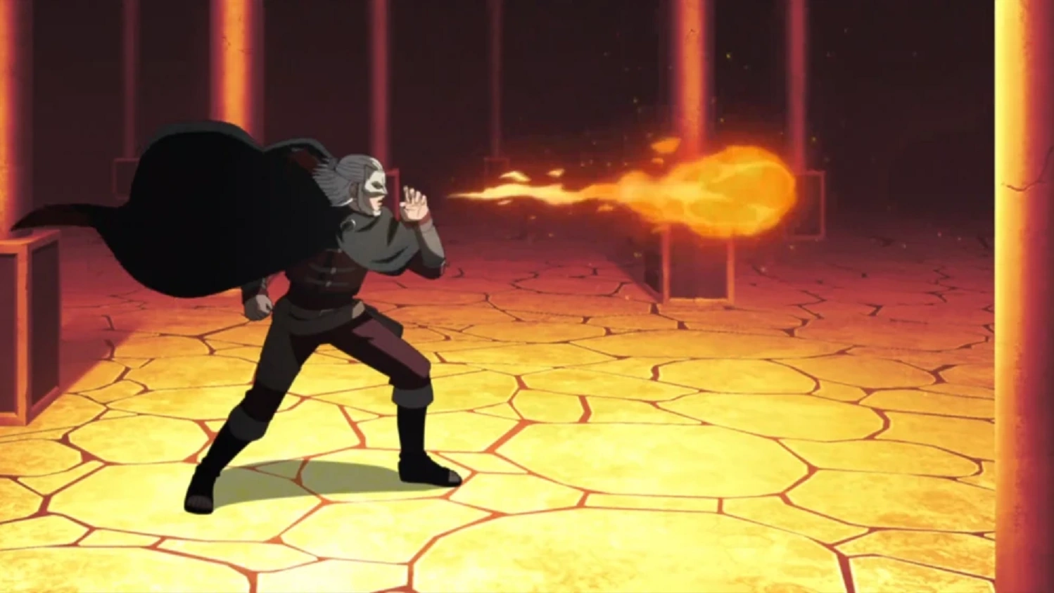 Koji utiliza el Elemento Fuego y el Elemento Tierra. Mediante la naturaleza del fuego, puede liberar una llamarada desde su boca[78] y producir una explosión espontánea capaz de consumir, en segundos, a una persona, superando técnicas de regeneración.[79] Igualmente, es capaz de disparar una andanada de bolas de fuego en rápida sucesión,[80] una única inmensa bola de fuego,[81] e imbuir sus puños con fuego para consumir al objetivo, una vez hacer contacto.[82]
