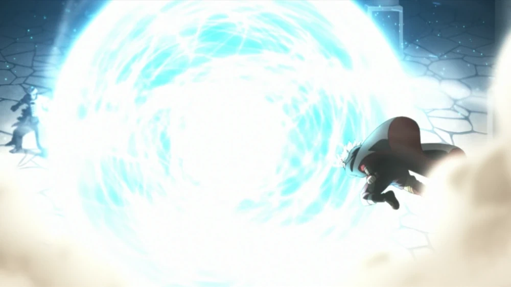Koji ataca a Isshiki con la Super Gran Bola Rasengan.