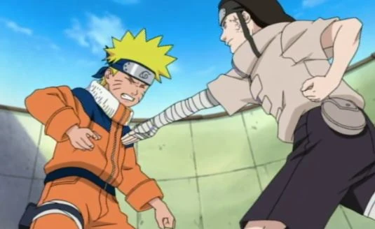 Luego de haber impactado su ataque en Naruto, Genma Shiranui sube un brazo de Neji y dice que el combate había terminado. Neji se acerca a Naruto. Hinata, entonces, comienza a toser más. Kiba le pregunta si está bien. Sakura murmura el nombre de Naruto. Neji se sorprendió de pronto al ver que Naruto está tratando de ponerse de pie. Naruto abre los ojos y su visión es un poco borrosa. Luego piensa en Lee e Hinata, que se mantuvieron en pie en todo momento, y obtiene fuerzas para levantarse. Neji se sorprendió de pronto al ver a Naruto recuperándose rápidamente de su ataque. Hinata tose sangre, y Kiba y Kotetsu piensan que sus heridas aún no sanan. Luego, sobre su clan, recalcando su juinjutsu: Sello Maldito del Clan Hyūga. Después, habla sobre el destino, y que el destino de Naruto era perder frente a él.