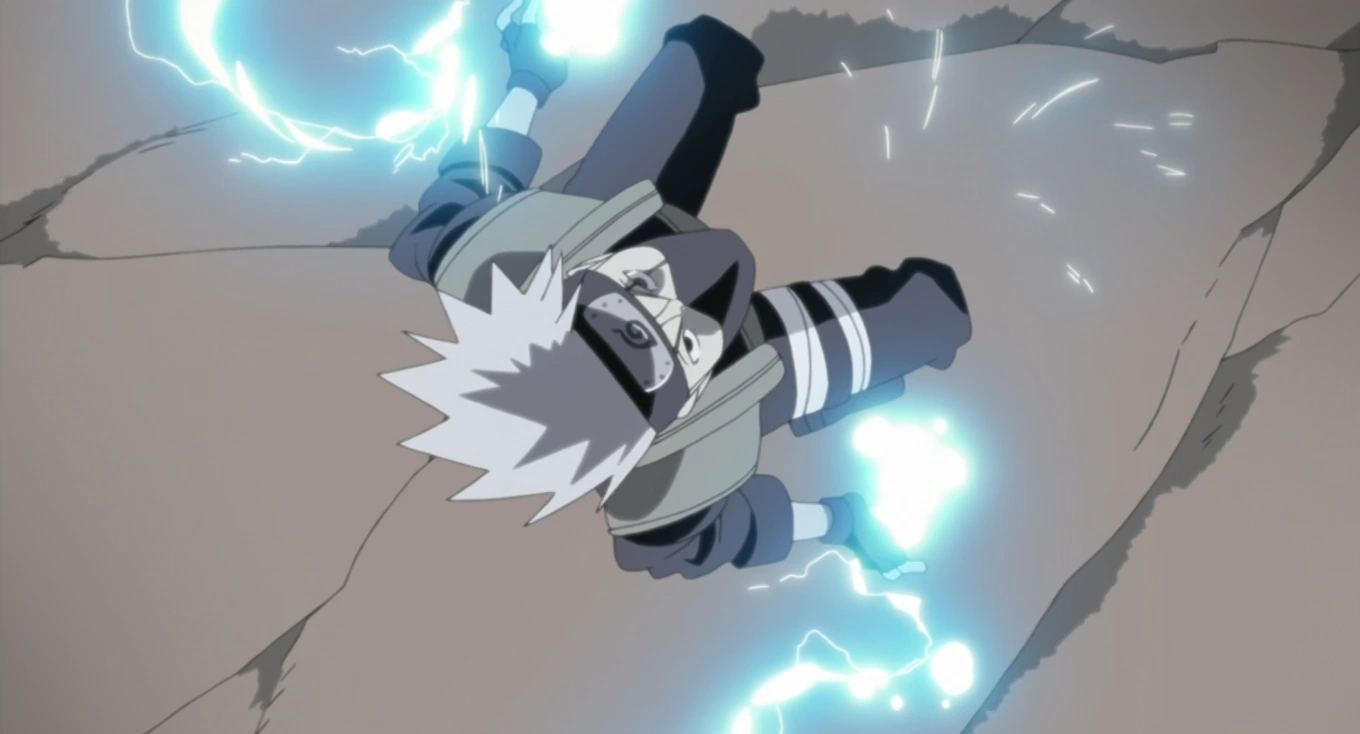 Kakashi utilisant l'Éclair Pourfendeur de chaque main. |