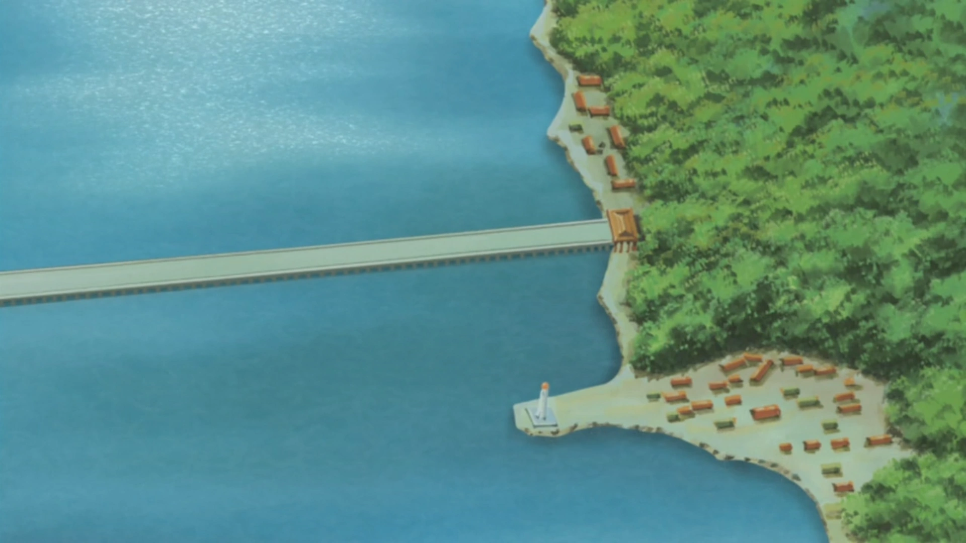 Au cours de la seconde partie, alors qu'il vint au Pays des Vagues avec Suigetsu afin de récupérer l'épée de Zabuza Momochi, Sasuke découvrit le nom du pont.