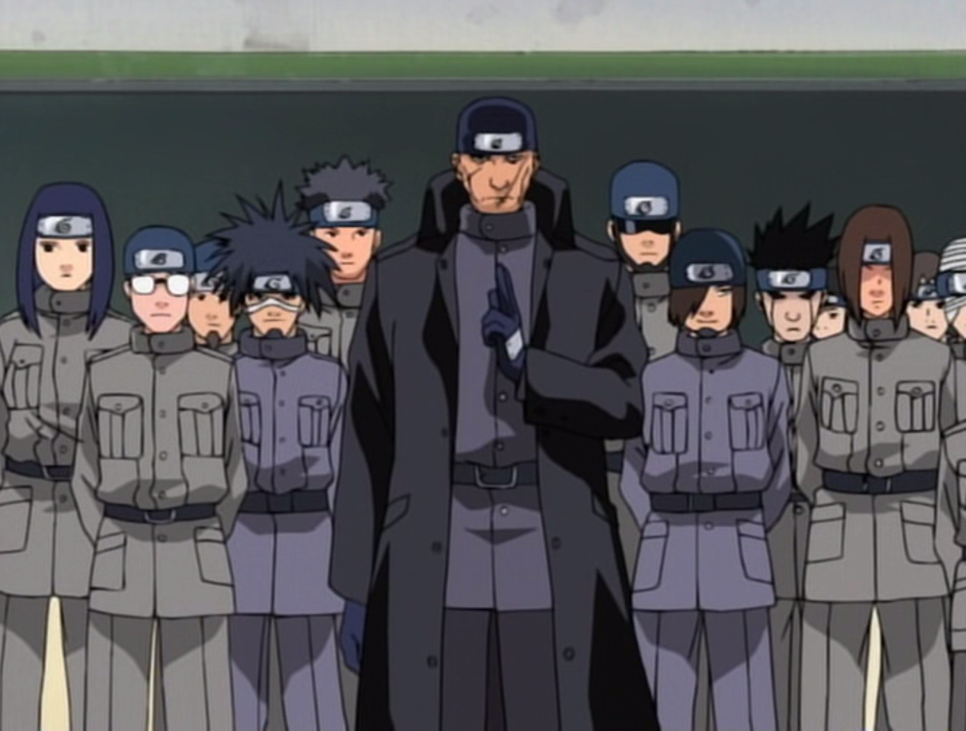 Kotetsu, aux côtés d'Ibiki et des autres examinateurs de la première épreuve.