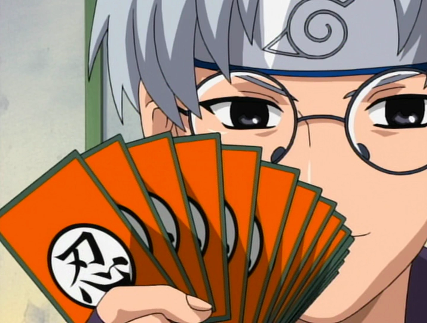 Kakashi réunit l'Équipe 7 avant d'entrer dans la salle de l'Examen Chûnin. Il les informe que si l'un d'entre eux ne voulait pas passer l'examen, alors aucun d'eux ne pourrait le passer. Après cela, il leur souhaite bonne chance. Les neuf genin rencontrent Kabuto Yakushi, qui utilise ses cartes de renseignement pour donner des informations à Sasuke sur Rock Lee et Gaara. Kabuto explique au neuf genin que les autres ninjas dans la salle font sans doute, partie de l'élite des genin de leurs villages respectifs. Avec son enthousiasme habituel, Naruto proclame à tous les ninjas de la salle qu'il ne perdra pas face à eux ce qui crée alors une certaine tension dans la salle. Après cela, trois ninjas du village d'Oto attaque Kabuto. Alors que l'on pense que Kabuto a évité l'attaque, ses lunettes se brisent soudainement, et Kabuto tombe pris d'un malaise et vomit sur le coup. Avant que la situation ne dégénère, le surveillant du premier examen, Ibiki Morino, et son équipe apparaissent dans la salle et déclare que la première épreuve pouvait commencer.