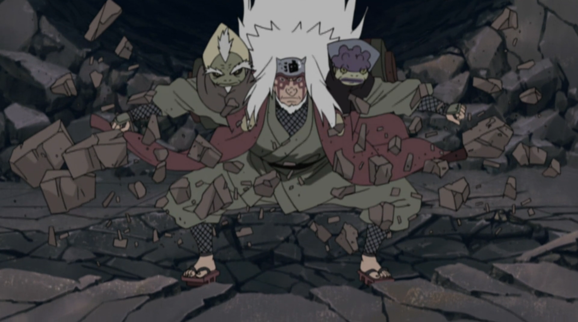 N'ayant pas d'autre choix, Jiraya et Gamaken commencent leur combat contre Pain. Après s'être caché grâce à un camouflage, Pain invoque des créatures pour vaincre Jiraya. Réalisant qu'il se battait contre un ennemi puissant, Jiraya utilise une barrière et se prépare à entrer en Mode Ermite. En raison de la situation de Gamaken, il subit de profondes blessures du combat. Quand Jiraya était prêt à utiliser sa technique, Gamaken quitte le combat. Jiraya entre en Mode Ermite et invoque Fukasaku et Shima. Il trouve Pain qui invoque deux autres corps à entrer dans le combat.