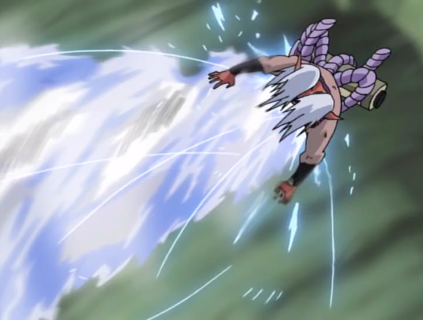 Dans l'anime, Kiba et Akamaru étaient capable d'utiliser cette technique sans marquer leurs adversaires, en attaquant constammment jusqu'à toucher leur cible.[2] Même si la cible n'est pas directement touchée par la technique, elle peut subir des dégâts par le vent résultant de la rotation.[1] Cette technique réussit à faire une brèche sur le rempart qu'avaient invoqué Sakon et Ukon. Cependant, elle n'est pas sans conséquences sur le corps de ceux qui la pratiquent, qui limitent donc son utilisation.[3]