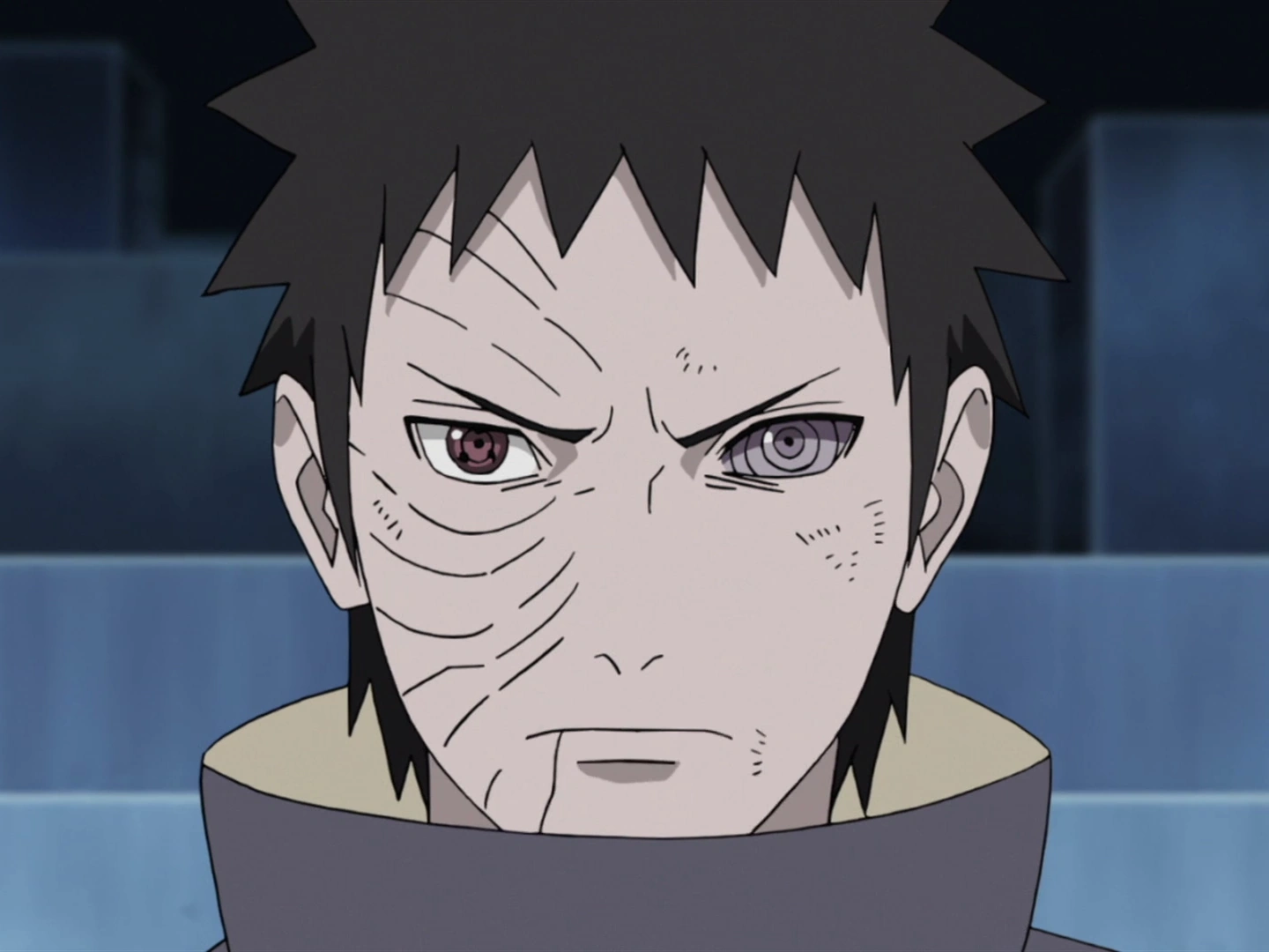 השארינגאן השמאלי של טובי המסכה השבורה של טובי חושפת שני שארינגאן שלו.