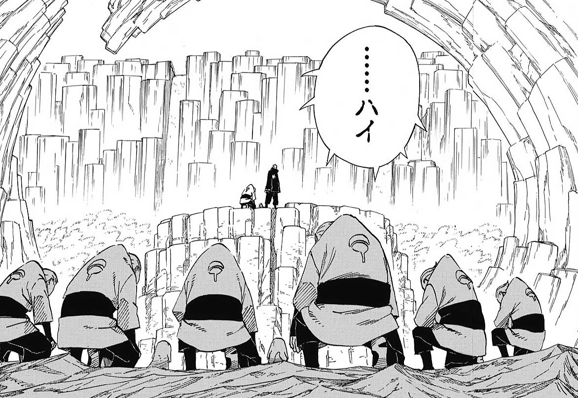 Az Akatsuki tagjai a Gedo mazo ujjain foglalnak helyet gyülekezetek idején, ebben a sorrendben: