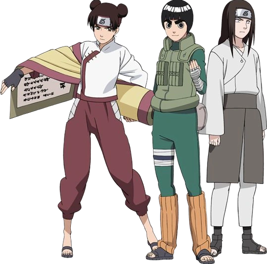 Mikor Gai megkérdezi tőle, hogy miért akart ninja lenni, miért csinálta mindezt végig ő nem szeretne válaszolni, és amikor Lee feláll, és elmondja, hogy annak ellenére, hogy nincs tehetsége bebizonyítja a világnak, hogy belőle is válhat kiváló nindzsa. Neji ekkor kineveti, és nem törődik vele. Ezek után Lee mindig meg szeretne vele mérkőzni, hogy bebizonyítsa, az igazát, de nem tudja legyőzni őt. Ugyanakkor vannak feladatok ami előtt ő tanácstalanul áll, míg Lee könnyen végrehajtja őket. Valójában sajnálja Lee-t, mert tényleg szentül meg van győződve róla, hogy hiába igyekszik ennyit. A Narutoval való küzdelem során azonban róla, Lee-ről (saját magával való küzdéséről) is megváltozik a véleménye. Tenten meg van győződve arról, hogy ő legyőzhetetlen, legalábbis a geninek számára. Általában a küldetések során ő dönt, de nem parancsolgat a többieknek. Mire felnőnek (nagyobbak lesznek) Neji teljesen elfogadja csapattársait, képes teljesen összhangban lenni velük.