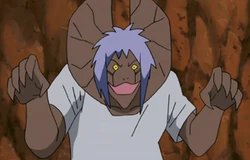 Ha ricevuto il Segno Maledetto nel corso degli esperimenti di Orochimaru. Quando è attivo, gli dà due grandi protuberanze simili a lembi su entrambi i lati della testa, imitando quella della lucertola dal collo arricciato, guadagnando anche alcune caratteristiche visibili di detta lucertola. Aveva anche lunghi capelli viola chiaro e indossava l'abbigliamento tipico di uno dei prigionieri di Orochimaru che consisteva in una maglietta bianca e un paio di pantaloni.