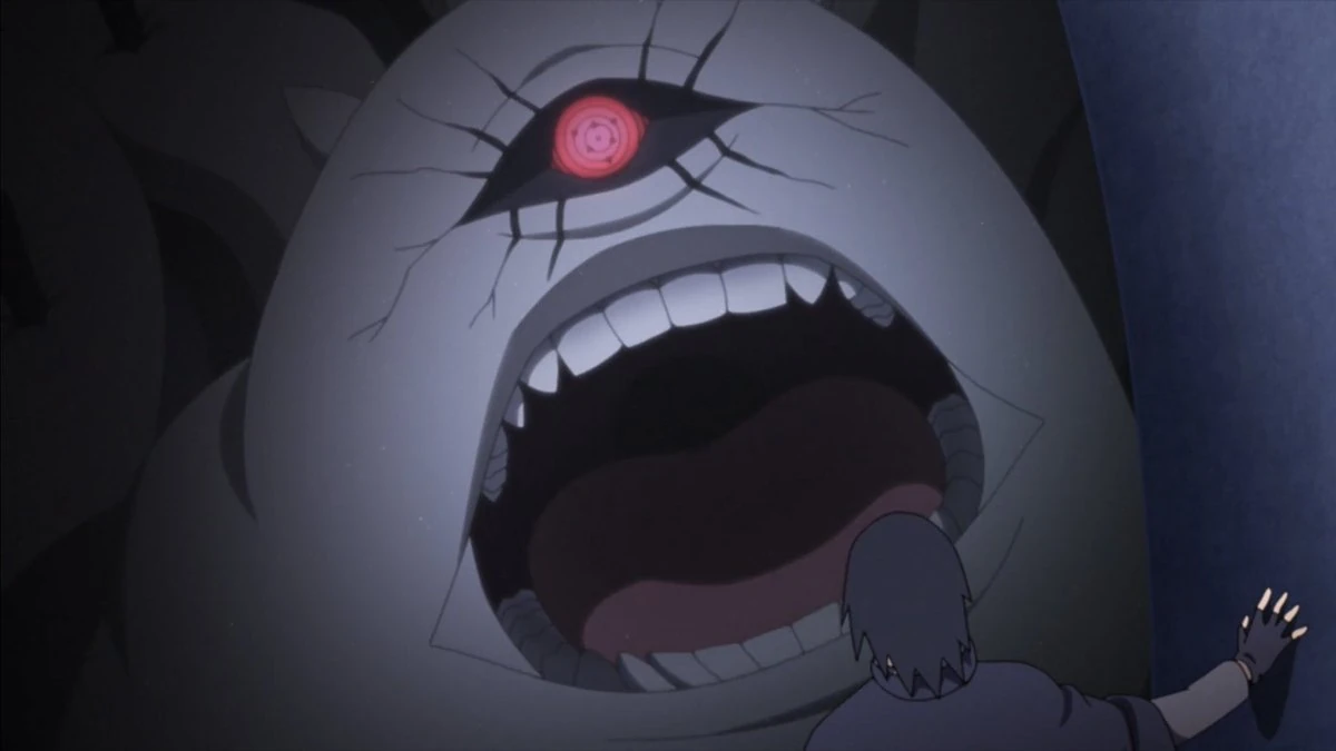La bestia possiede una singola arte oculare di colore rosso contenente diversi anelli concentrici e sei tomoe, che Sasuke Uchiha ha identificato come un Rinnegan.[3] Ha presumibilmente una massiccia riserva di chakra, in quanto Isshiki Otsutsuki ne avrebbe preso un po' quando necessario.