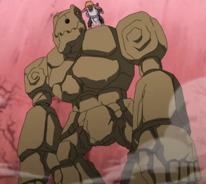 Il golem di terra fu evocato da un Jirobo reincarnato insieme alle rispettive convocazioni degli altri membri del quartetto del suono durante la Quarta Guerra Mondiale Ninja.