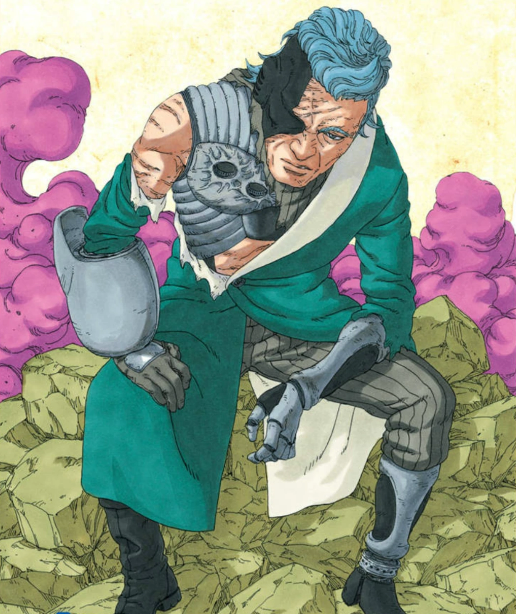 Mentre il Team 7 e Katasuke prendono il Fulmitreno per la loro missione, incontrano Ao. Katasuke presenta Ao come uno dei suoi pazienti. Quando Boruto condivide il suo disprezzo per gli strumenti scientifici dei ninja, Sarada nota che i giochi e le tecnologie attuali sono dovuti alle innovazioni scientifiche. Mentre Katasuke esegue la manutenzione del braccio di Ao, Boruto apprende che Ao era un ex shinobi del Villaggio della Nebbia e che è vivo grazie alle innovazioni degli strumenti scientifici ninja.
