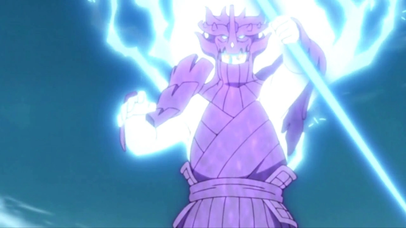 In seguito, egli vi immette il chakra dei nove Cercoteri come se il Susanoo fosse una Statua Diabolica, aumentandone drasticamente la potenza e dotandolo di fulmini che si protrudono dalla sua schiena.[16]