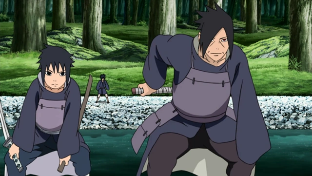 სენჯუს კლანის წინააღმდეგ ბრძოლაში ტაჯიმამ ხუთი შვილიდან სამი დაკარგა. ცოცხლები მხოლოდ მადარა და იზუნა გადარჩნენ.[1] მოგვიანებით, ტაჯიმამ შეიტყო, რომ მისი უფროსი შვილი მადარა სენჯუს კლანის წევრს - ჰაშირამას იცნობდა. მადარასა და ჰაშირამას ბოლო შეხვედრისას ტაჯიმამ და იზუნამ ჰაშირამას მოკვლა დააპირეს, მაგრამ მათ ხელი ბუცუმა სენჯუმ და მისმა ვაჟმა ტობირამამ შეუშალეს. მამები ერთმანეთის უმცროსი შვილების მოკვლას შეეცადნენ, თუმცა მადარასა და ჰაშირამას ძალისხმევით ბრძოლა მსხვერპლის გარეშე დასრულდა. მიუხედავად იმისა, რომ ბოლოს უჩიჰებმა უკან დაიხიეს, ტაჯიმა მაინც კმაყოფილი დარჩა იმით, რომ მადარამ თავისი შარინგანის გაღვიძება მოახერხა.