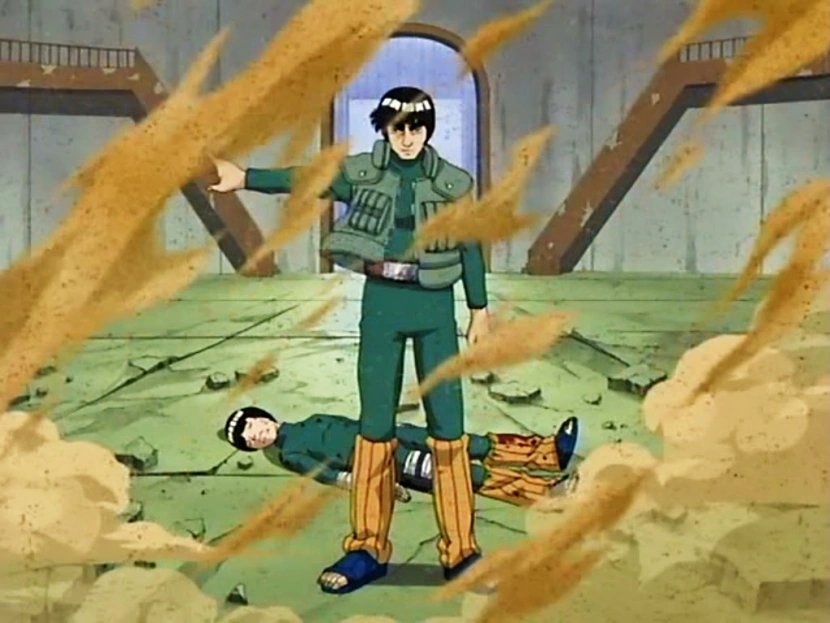 rzeczywistej walki, Lee nieustannie rozwijał swój poziom walki, ale wciąż był niewystarczający w walce z Gaarą, i za każdym razem Guy wyraził zgodę Lee, aby zwiększyć siłę swoich ciosów. Kiedy Lee zaczynały kończyć się opcję, Guy pozwolił Lee, aby otworzyć pierwsze pięć bram chakry, aby pokonać Gaarę. Mimo, że Lee to zrobił, jego wysiłki nie powiodły się, i sam został ciężko ranny. Gdy Gaara chciał zabić Lee, Guy wkroczył, aby powstrzymać walkę, bo nie chciał, aby coś się stało Lee. Gdy Lee został zabrany na leczenie, jeden z lekarzy poinformował Guya, że obrażenia ciała Lee były tak poważne, że nigdy nie będzie w stanie walczyć znowu jak ninja. Guy został zmiażdżony przez tę perspektywę, i żałował, że nauczył Lee tak wielu niebezpiecznych technik.