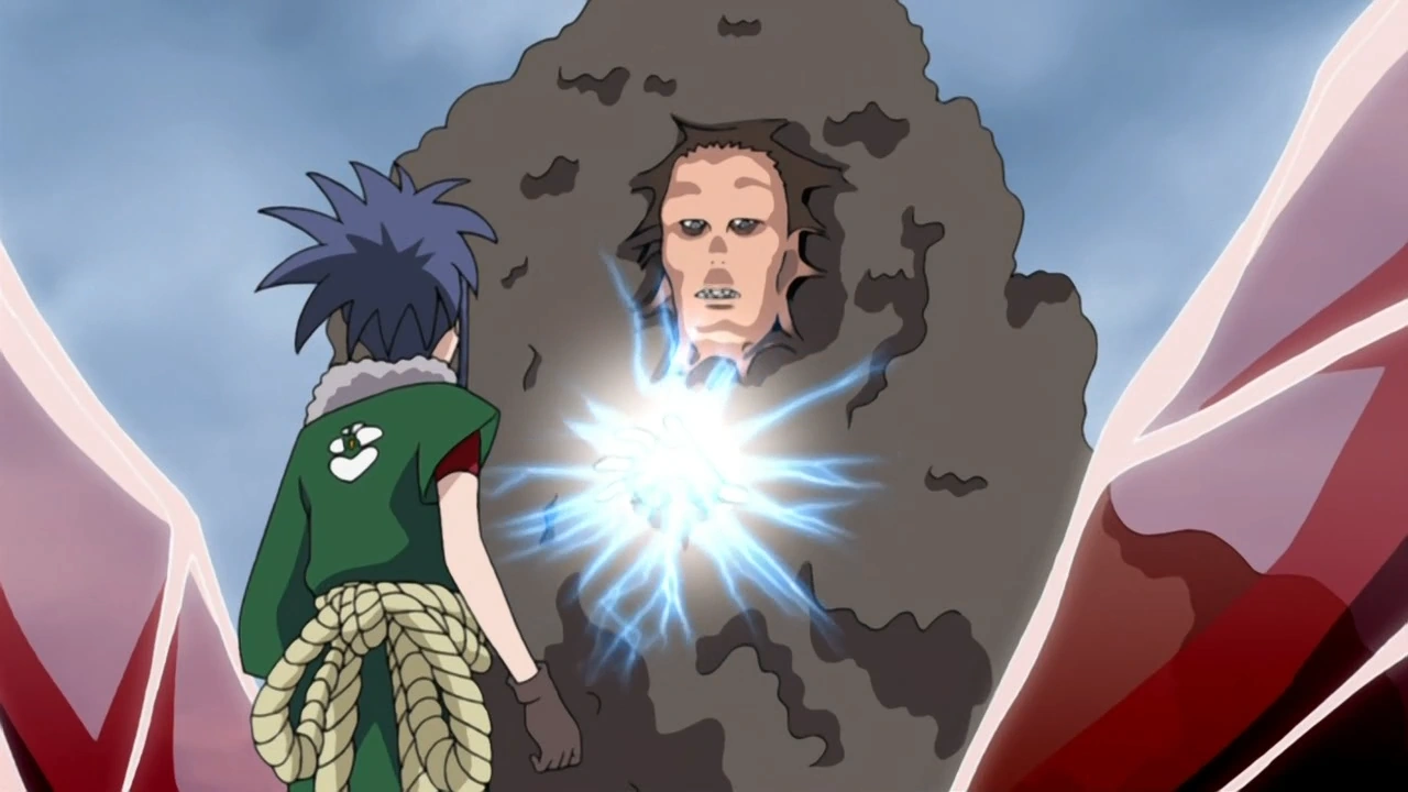 Ele sente o chakra de Guren, e corre para salvá-la de Kakashi. Ele é atingido pelo Chidori de Kakashi e aparentemente morre.