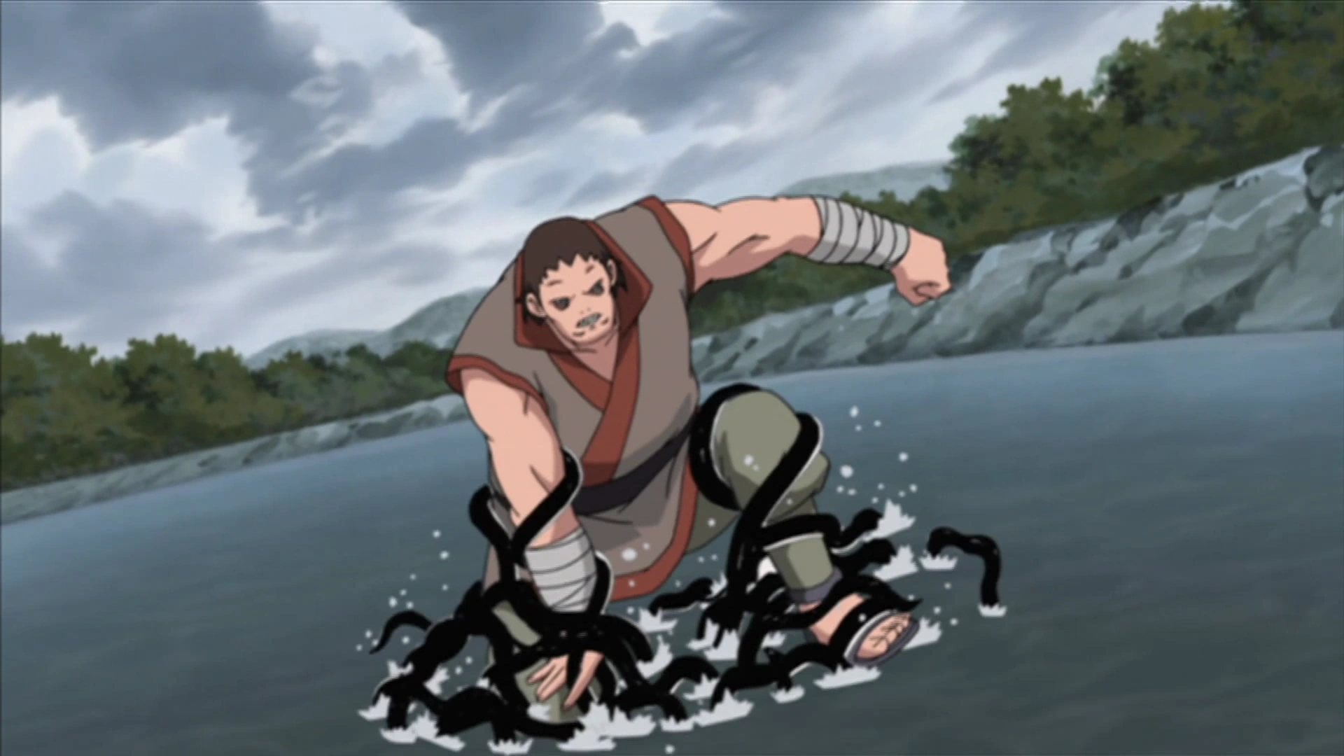 Como o membro mais forte, sem dúvida, ele foi enviado primeiro para enfrentar e atrair Kakashi para longe. Lá, ele rapidamente mostrou sua força tremenda que manteve Kakashi na ponta dos pés. Quando Kakashi astúcia e habilidade foi demais para ele, ele tirou o seu trunfo para alterar seu corpo ainda mais, dando-lhe velocidade ainda maior e força. No final, ele quase não sobreviveu a sua luta contra Kakashi, depois de terem sofrido um braço quebrado e forçado a recuar.