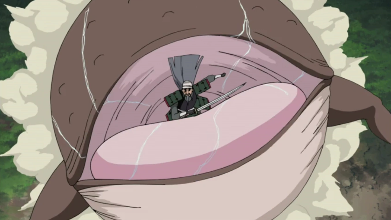 Ao perseguir a Divisão de Ataque Surpresa, Hanzō invocou Ibuse, que imediatamente solta uma grande quantidade de veneno, a fim de imobilizar os shinobi de fugir. Hanzō então saltou de Ibuse para acabar com eles, mas eles são salvos por um grupo de samurais. Chiyo então diz a Kankurou e os samurais que o veneno de Ibuse precisava de pelo menos cinco minutos para reabastecer. Devido a isso, Hanzō ordenou a ela se esconder no subsolo. Ela surgiu depois debaixo de Mifune, engolindo-o em uma tentativa de matar o samurai, no entanto, Mifune cortou a sua cabeça Ibuse e escapou.
