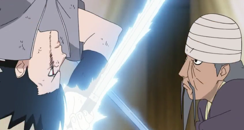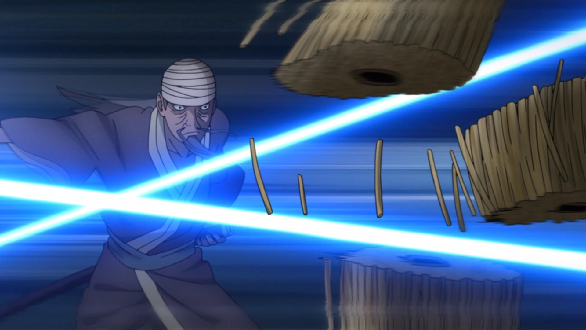 Mifune atacando a Dez-Caudas com seu lampejo.