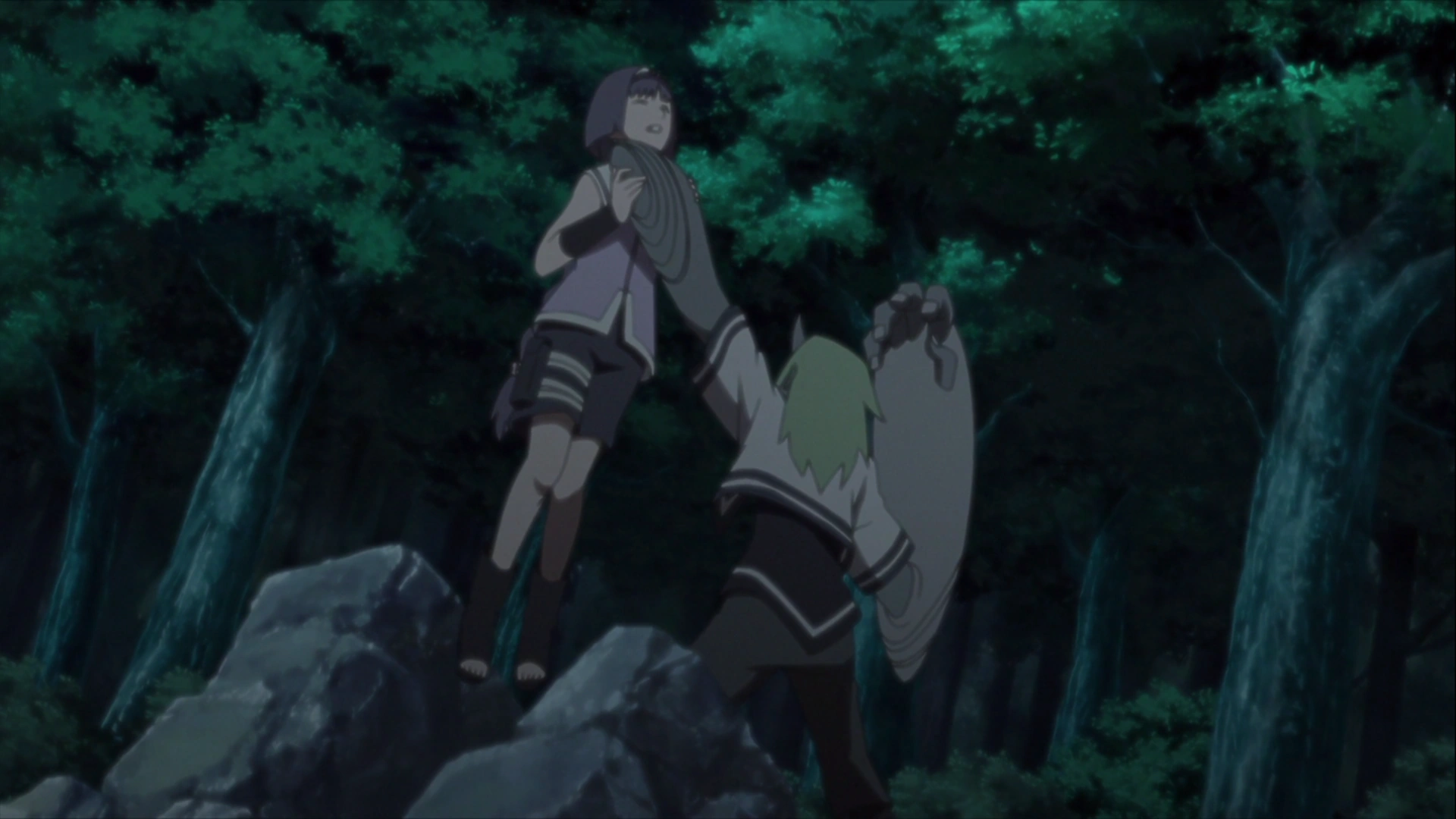 Artigo principal: Arco de Juugo Momo e Sasami confrontaram e impediram o Time 15 de solicitar apoio de Konoha. Usando a oportunidade para testar seus selos baseados em dispositivos, ambos conseguiram imobilizar Namida Suzumeno e Wasabi Izuno enquanto Sumire Kakei escapou com Nue. Mais tarde, eles se disfarçaram de pesquisadores do País dos Rios e trouxeram Namida e Wasabi, ambas infectadas com o selo amaldiçoado, de volta à vila, informando ao Time 7 que eles só encontraram os dois membros do Time 15 inconscientes, mas não encontraram Sumire. Depois que os pesquisadores do País dos Rios assumiram a custódia de Juugo incapacitado e toda a vila se voltou contra os ninjas de Konoha, ele e sua irmã ficaram diante de Juugo com o pesquisador-chefe se preparando para fazer experiências com ele.