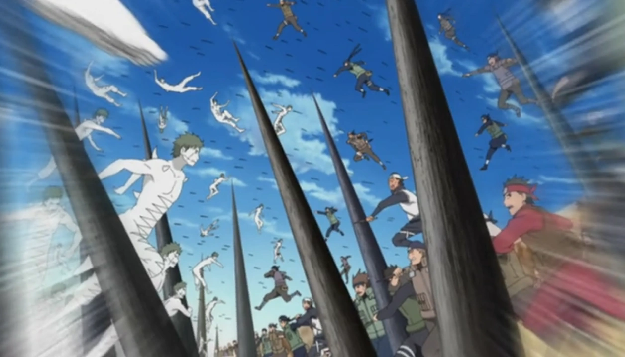Depois de descobrirem o verdadeiro papel de Zetsu Branco, eles desenvolvem uma forma de manter os outros longe, desenhando círculos em torno de si e usando kunai, considerando que quem adentrar um desses círculos será um inimigo. Após isto, eles esperam pela chegada de Naruto para ele poder identificar os inimigos ocultos entre eles.