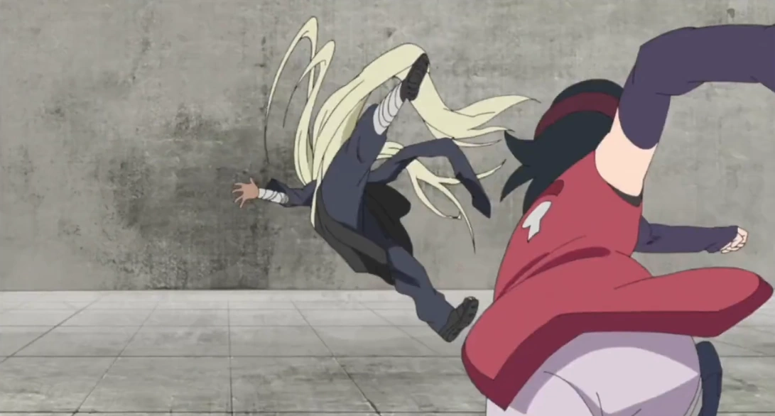 Sarada chutando o inimigo.