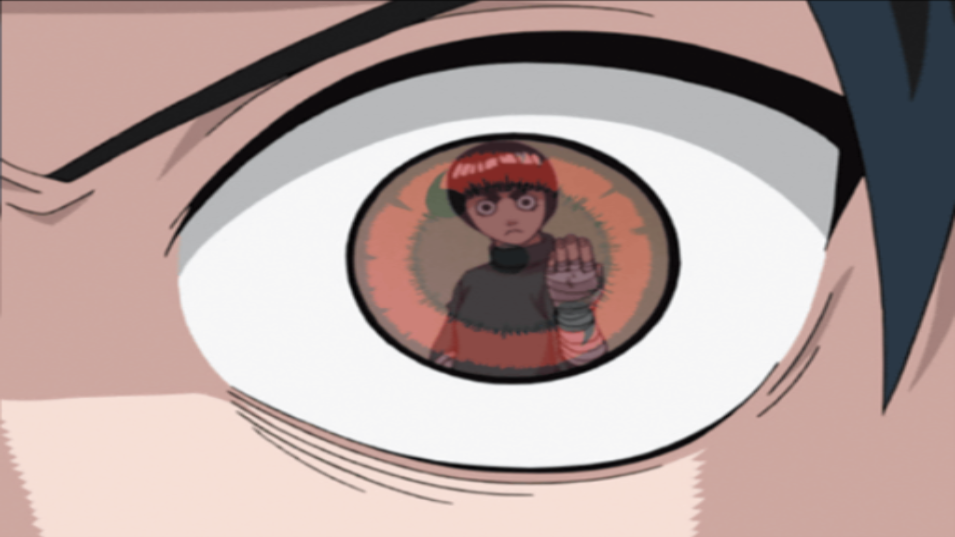 O Sharingan decifrando e copiando as habilidades de Lee.