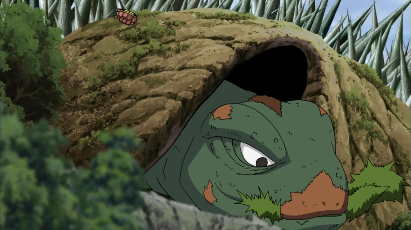 - Uma das Nove Bestas Mascaradas se assemelha a uma tartaruga e é chamada de Genbu,[22] assim como a ilha tartaruga de Kumogakure.