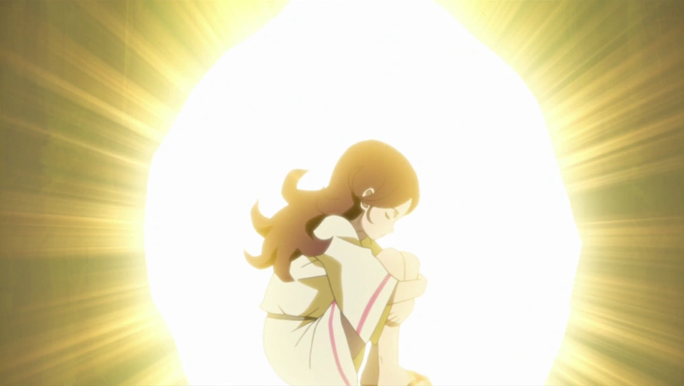 Durante seu tempo com Kinoe no festival, ela usa um vestido amarelo claro, com listras cor de rosa com um cinto e sandálias cor de rosa.