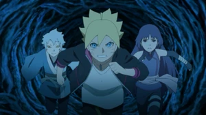 După ce au fost atrași în dimensiunea lui Nue, Boruto și Mitsuki se luptă cu monstrul și încearcă să o oprească pe Sumire.