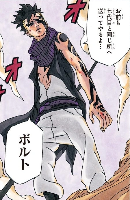 După distrugerea Konohăi, el și Boruto Uzumaki se înfruntă pe Monumentul Hokage distrus, unde Kawaki jură să-l înfrângă pe Boruto și spune că era shinobilor s-a terminat.