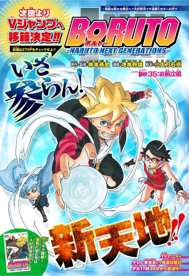 Мицуки спрашивает Боруто о том, что будет если Боруто никогда не избавится от Камы, независимо от того будет Джиген побеждён или нет. Боруто предпочитает думать об этом как об очередной миссии, и говорит о том что раз это миссия, то он приложит все усилия для того чтобы её выполнить, поскольку он сын Хокаге, ученик Саске Учихи, и ниндзя.