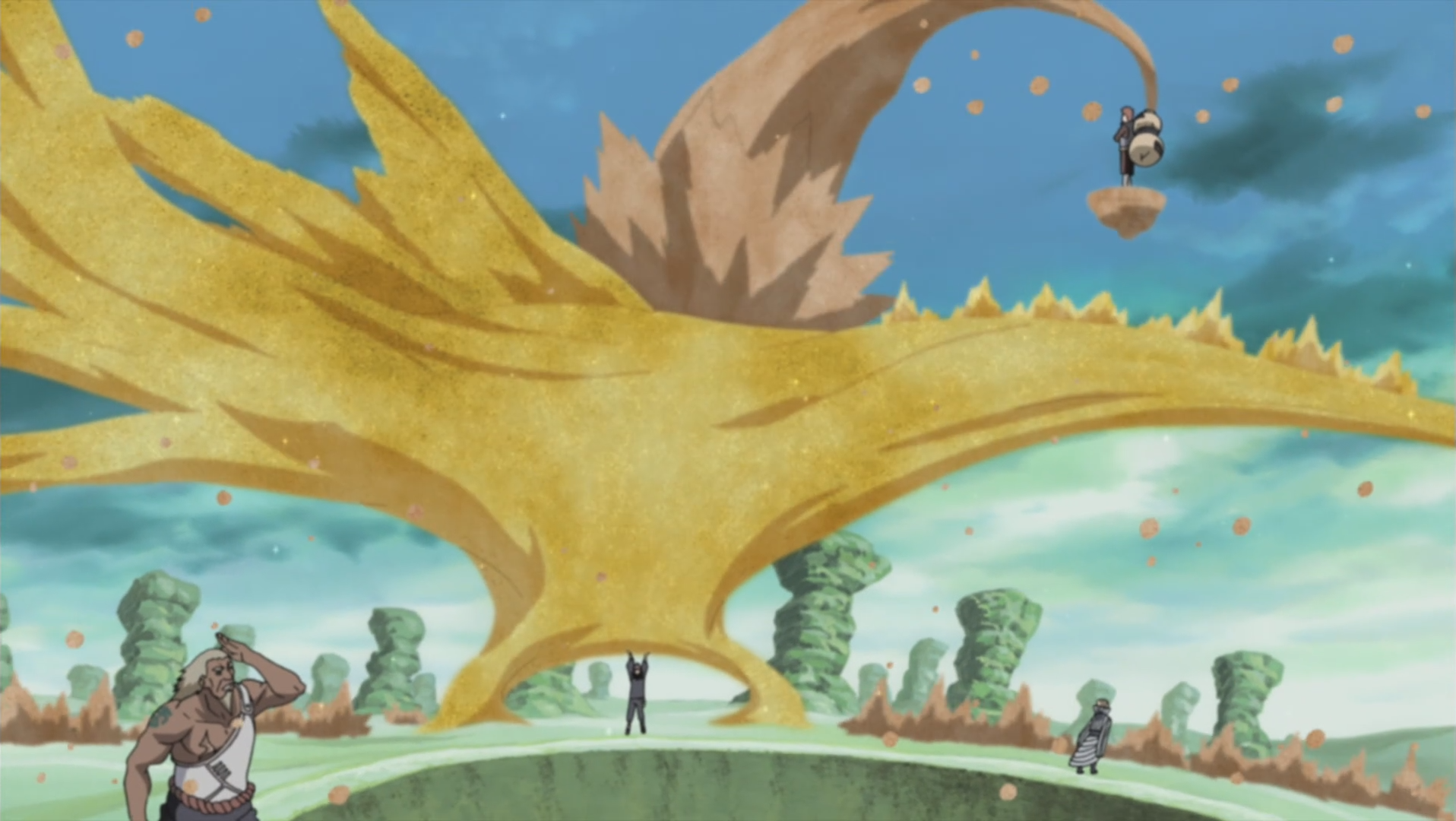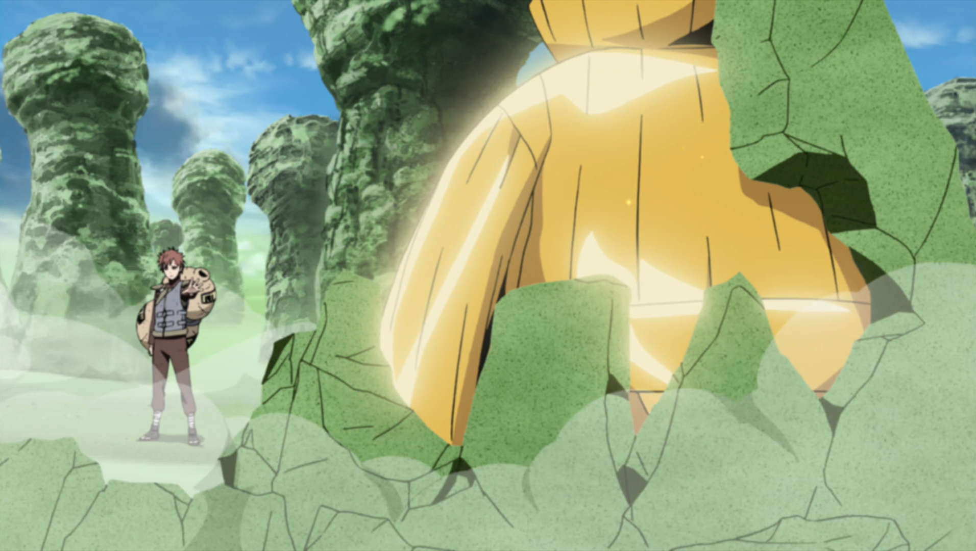 Гаара защищает всю свою деревню от взрыва C3 Дейдары.