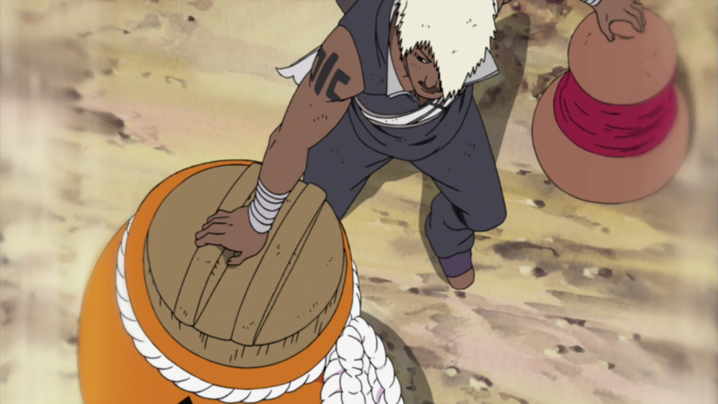 Даруи запечатывает Кинкаку в Янтарный Горшок Очищения.