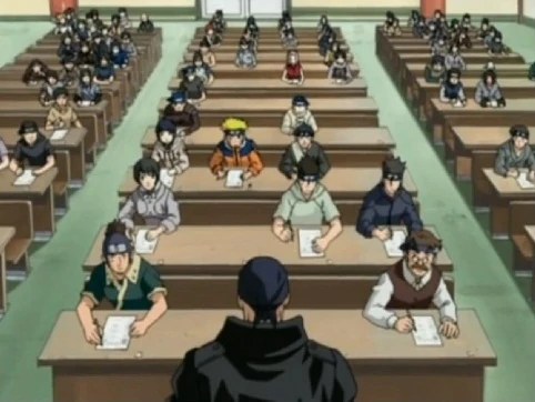 Тем временем в классе Ибики говорит, что они могут выбрать, отвечать или не отвечать на десятый вопрос. Если кто-то не захочет, то вся команда дисквалифицируется вместе с ним. А если кто-то хочет ответить на этот вопрос, но не знает ответа, то он потеряет право принимать участие в Чуунин Экзамене навсегда. Многие из генинов предпочитают не отвечать на вопрос, и покидают класс. Наруто громко говорит: «Вы недооцениваете меня, я буду отвечать на этот вопрос! Я не из робкого десятка! Я не боюсь никаких вопросов! Ничего, пусть я останусь генином на всю оставшуюся жизнь! Я все равно стану Хокаге!», успокаивая присутствующих. После этого, Ибики говорит, что все, кто остался в классе (78 человек) проходят. Затем он объясняет, что смысл первых девяти вопросов заключался в том, чтобы проверить их навыки сбора информации.