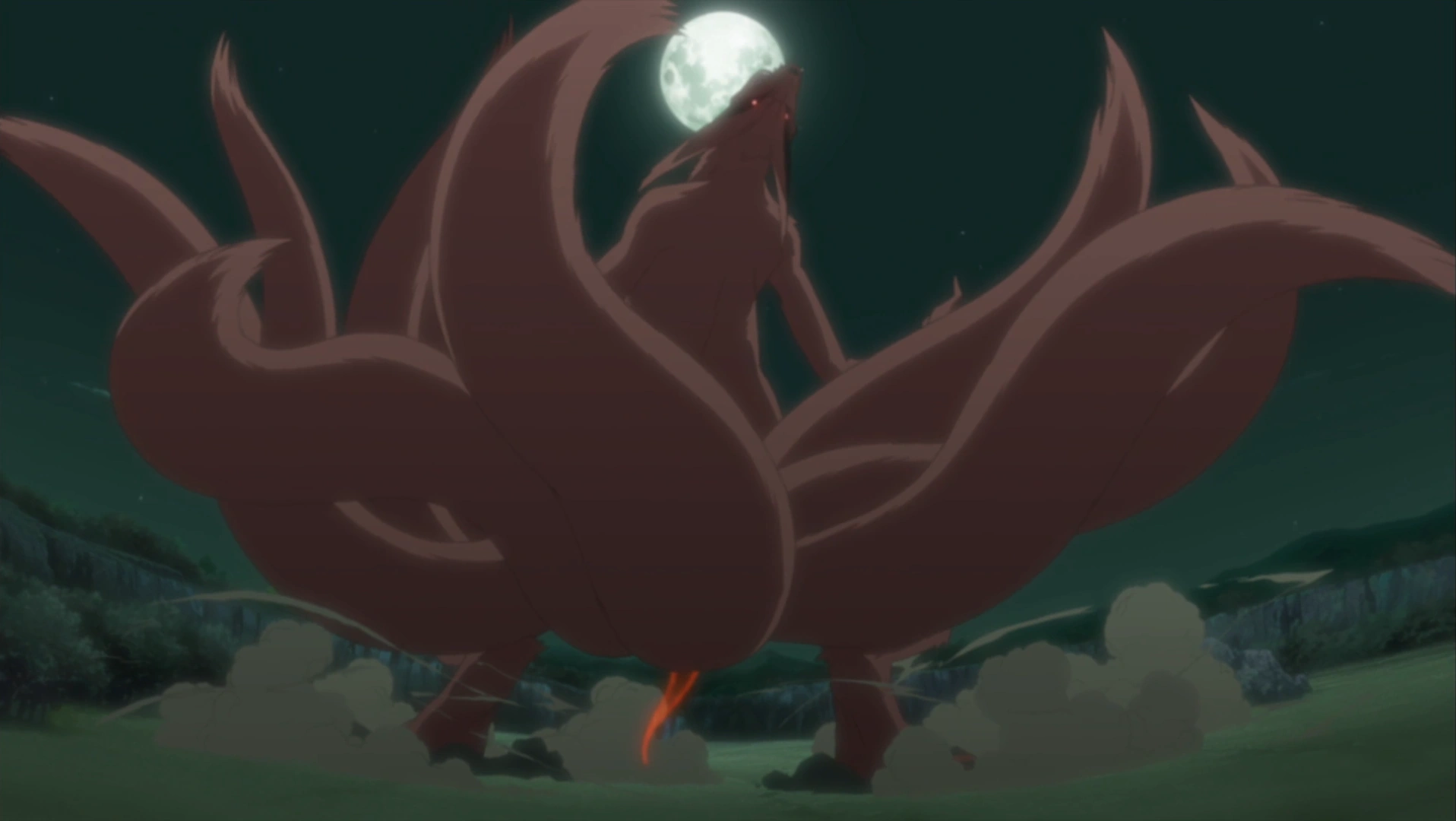 Еще до того, как Девятихвостый пришел в деревню, некоторые ощутили его подход: молодой Итачи Учиха почувствовал что-то зловещее, а его младший брат Саске начал плакать; Какаши Хатаке обнаружил неосязаемые изменение в воздухе при разговоре с Майто Гаем; Хирузен Сарутоби почувствовал Девятихвостого в своем кабинете и обомлел от того, что он в деревне. Тоби вернулся в деревню и призвал лиса, используя его для немедленного нападения. Анбу сообщили о появлении Девятихвостого Хирузену, который уже переоделся в боевую одежду, чтобы возглавить защиту деревни.[10]