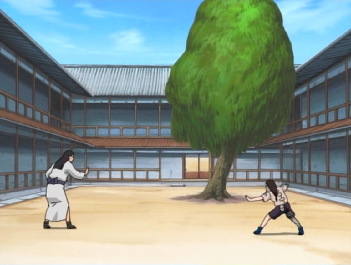 Проходит время. Неджи тренируется с Хинатой в доме главной семьи. Наруто уходит с Джирайей тренироваться.