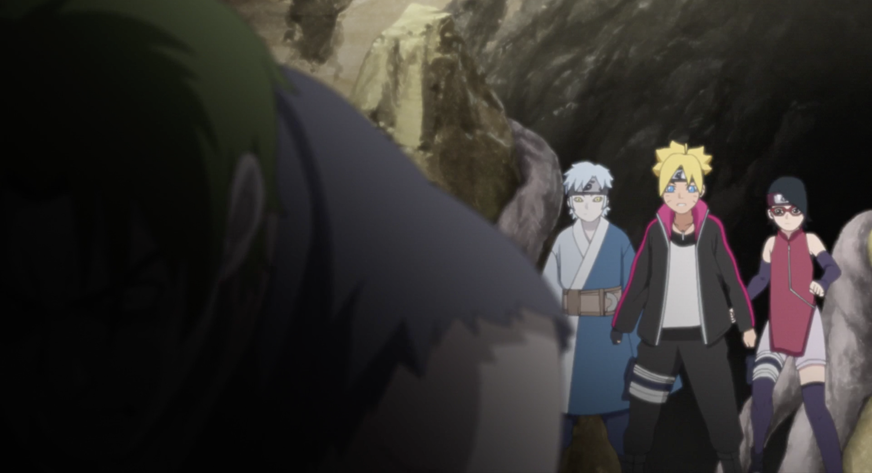 Человек в плаще ест фрукт, наблюдая за проходом, а затем спрыгивает с большого камня. Боруто практикуется в сюрикендзюцу сам, впечатляя этим Саске. Он узнал о том, что информация Шоджёджи привела к подтверждению существовании неизвестной организации, и хочет узнать о них побольше, обеспокоенный печатью на своей ладони. Саске говорит Боруто что поиски врага не зная достаточно информации о нём, могут привести к смерти, и советует ему продолжить тренироваться для миссий. Но также он признает что не ему это говорить, как сбежавшему в юности из деревни и протягивает Боруто перчатку, для того чтобы спрятать его печать, так как та привлекает внимание. Команде 7 назначена миссия в поиске пропавшего без вести вСтране Долин. К ним присоединяется недавно возвратившийся Мугино, что знаком с тем регионом. Мугино немногословен в общении с генинами, но он объясняет, что последние несколько лет он занимался выяснением конфликтов между малыми народами. Они приезжают в Страну Долин, и их встречает Миа, девушка, заказавшая эту миссию. Пропавшим выявляется её муж Анато, исследователь в фармакологической компании. Он должен был вернуться домой после месячной рабочей поездки, но про уже три недели с его предполагаемой даты возвращения, и компания не разглашает никакой информации из-за коммерческой тайны. Они приходят в компанию, где работает Анато. В рецепции уверяют Мию, что она будет в курсе в деле о поиске её мужа, так как те также отправили поисковую группу, чтобы найти Анато. В то время как несчастная Миа разыгрывает сцену, Мицуки использует свою змею для поиска информации. Ему удается узнать, куда была отправлена поисковая группа из компании. В то время как он рассказывает об возможных местах пропажи Анато своей команде, кто-то наблюдает за ними издалека. Приближаясь к месту назначения Анато, команда оказывается окружена другими шиноби. Виктор приказывает своим подчинённым отойти. Они удивлены тому, что глава компании участвует в поиске пропавшего. Виктор объясняет им свои мотивы. Они объединяются и делятся информацией, уменьшая количество предполагаемых мест пропажи Анато, исключая места которые уже были исследованы. Команда обыскивает пещеру и находят корни деревьев и их ветви, прежде чем как найти Анато на другом конце пещеры. Неожиданно Анато нападает на них.