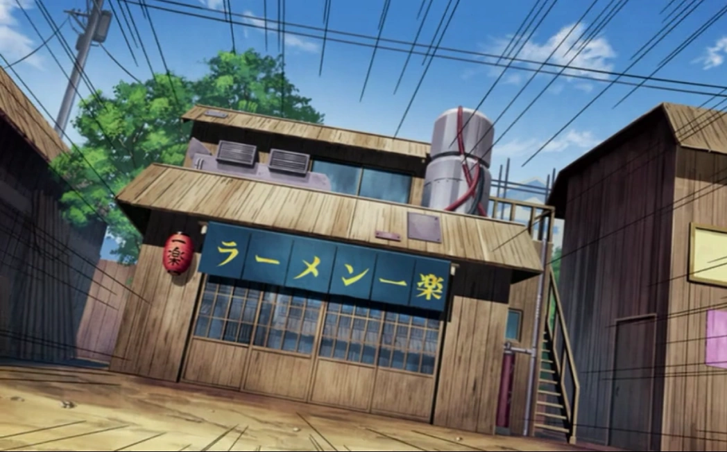 Рамен Ичираку (яп. ラ ー メ ン 一 楽, Раамэн Итираку) — представляет собой небольшой ресторан в Деревни Скрытого Листа, где подают рамен. Кроме того, это любимое место Наруто Узумаки и Ируки Умино, чтобы поесть. Он находится в управлении Теучи и его дочери Аяме. Оба считают Наруто своим любимым клиентом и никогда не рассматривали его в негативном свете. В Части II манги, Аяме отправляется в поездку и Мацу и Ниши нанимают, чтобы заменить её. Оба довольно неумелы и либо разливают рамен, который они подают, или случайно суют свои пальцы в него. Заведение было разрушено во время нападения Пэйна на Коноху и новое здание было построено где-то после вторжения. В аниме, можно предположить, что Инари помогал построить новое заведение, так как он сказал Наруто, что он будет строить его любимый Рамен Ичираку.