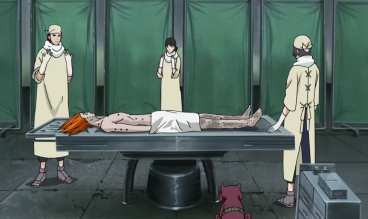 Шизуне со своей командой медиков исследуют одно из тел Пейна.